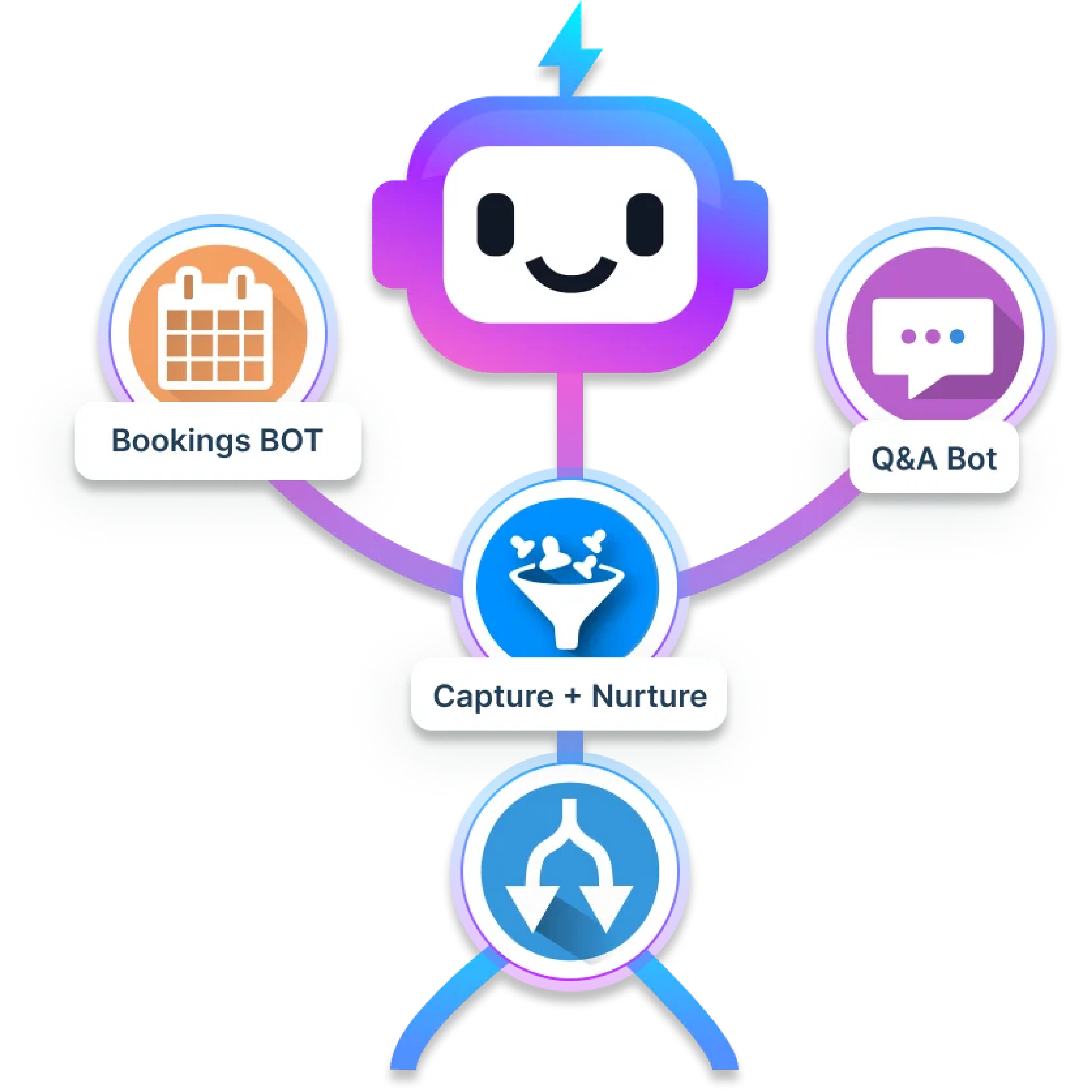 bizziBOT learns your business, immediately answers visitors' questions, captures leads, automates marketing, and more.